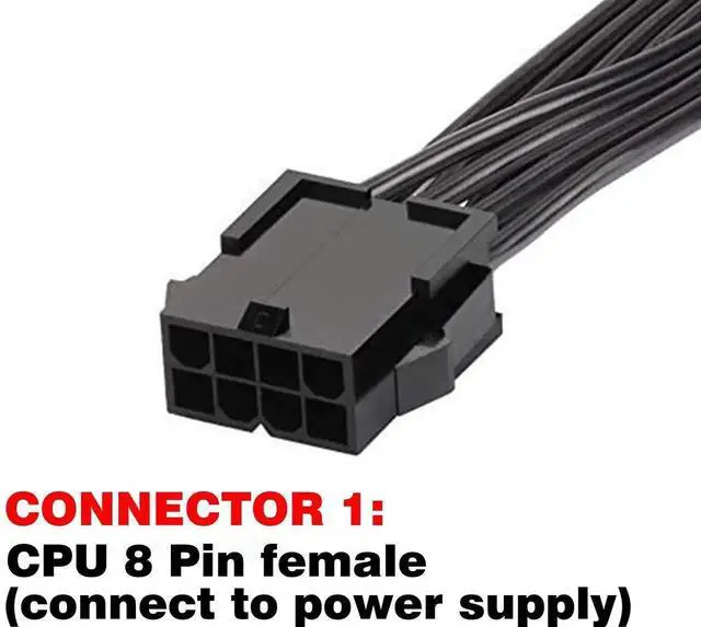 Connector 1- CPU 8 pin EPS-12V female (connect to power supply 8 pin EPS 12V) . Connectors 2 - CPU 8 pin male + CPU 4 Pin male (connect to Motherboard 8+4 pin EPS 12V)