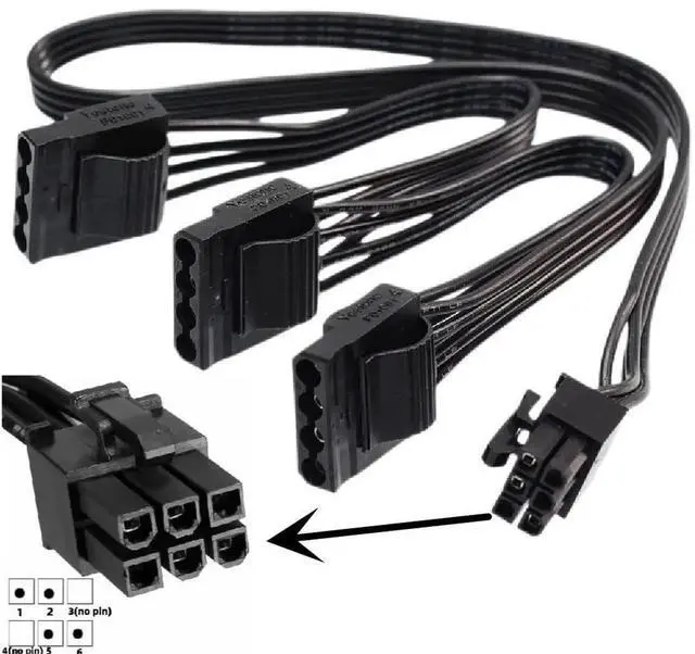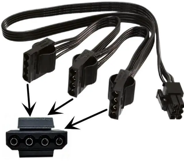 Features: The Molex Power Cable for E VGA PSUs is used to connect E VGA PSUs to riser card or hard drive. Support: Only for E VGA PSUs such as: SuperNOVA G1(650G1/750G1/1000G1), SuperNOVA G1+(650G1+/750G1+/850G1+/1000G1+), GS(650GS/850GS/1000GS/1050GS); SuperNOVA G2(650G2/750G2/850G2/1000G2/1300G2/1600G2), SuperNOVA G3(550G3/650G3/750G3/850G3/1000G3) ; SuperNOVA G5(650/750/850/1000), GA(550/650/750/850), GM(550/650/750/850); SuperNOVA B2(750B2/850B2), B3(450B3/550B3/650B3/750B3/850B3), BQ 650; for SuperNOVA P2(650P2/750P2/850P2/1000P2/1200P2/1600P2); SuperNOVA T2(750T2/850T2/1000T2/1600T2), SuperNOVA nex650g, Supernova 450GM/550GM; Please note that it is not compatible with semi modular power supply such as E VGA GQ series including: 650GQ/750GQ/850GQ/1000GQ. Specification: Cable Length: main 20inches(50cm)+secondary 6inches(15cm)+thridary 6inches(15cm) ,Between 2 molex: 6 inches(15cm) Connectors: 1x 6 pin male, 3x molex 4 pin female Including: for E VGA 6 Pin to 3x 4 Pin molex hard drive power supply cable*1pcs