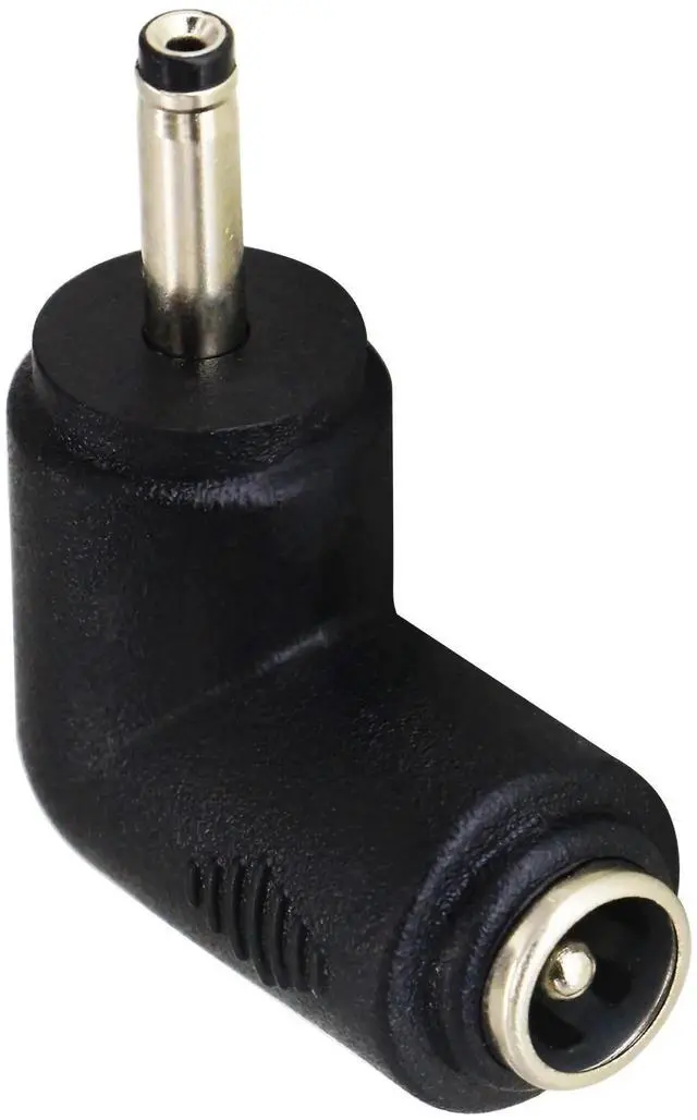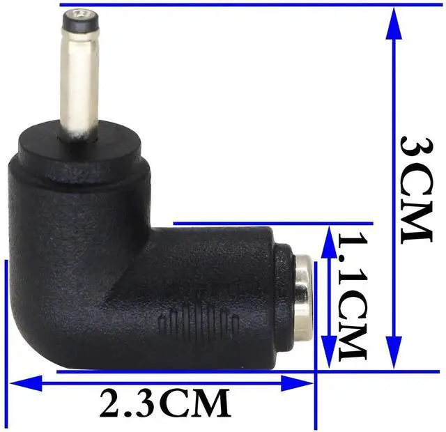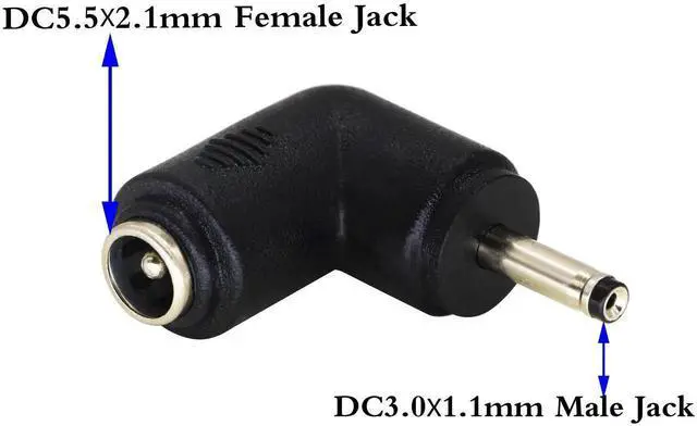 Features90 Degree Angle 3.0mm x 1.1mm male DC port to DC 5.5 x 2.1mm female port adapter Coupler