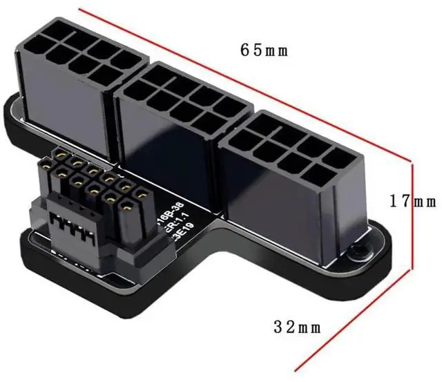 Our 12VHPWR to 3xATX8P 90 Degree Adapter increases more space between your GPU and your side panel. This enables installation of super wide cards in more narrow chassis.