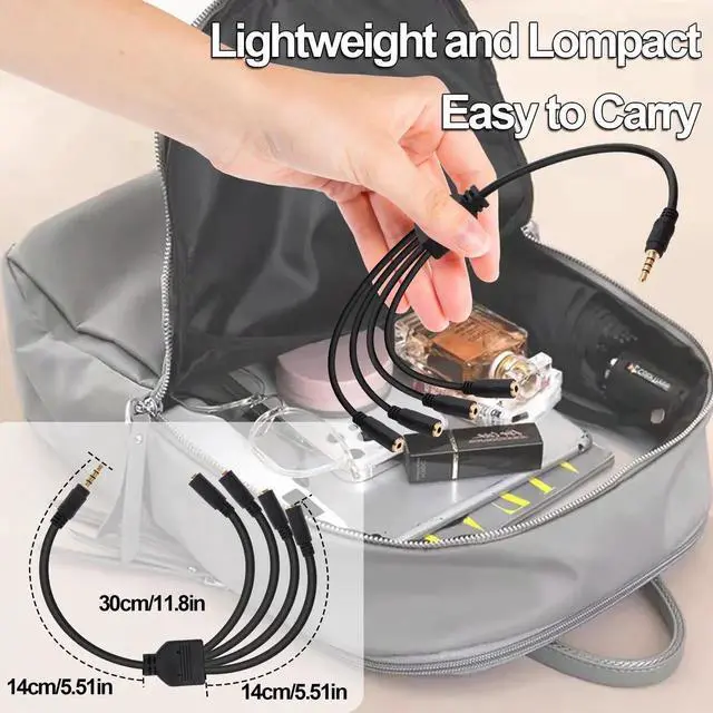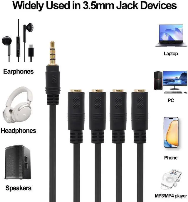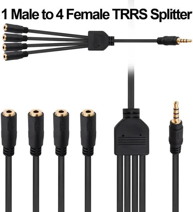 3.5mm TRRS Headphone Splitter Audio Cable Adapter 1/8 Inch 3.5mm Stereo 1 Male to 4 Female Micphone Extension Cable Cord for Tablets Phones Speakers