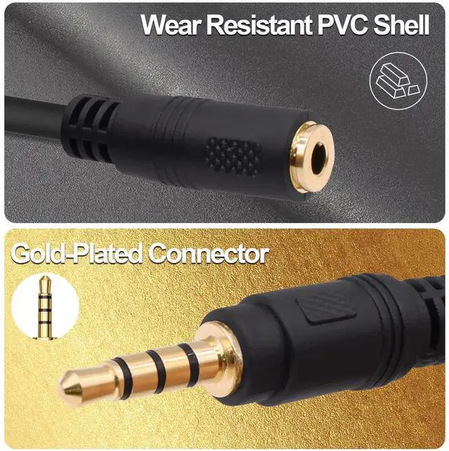 3.5mm trrs splitter extension cable is built to last forever. PVC casing and gold-plated plugs significantly enhance the durability for a longer lifespan.PVC shell is strong enough to withstand any twist, tug, and tangle