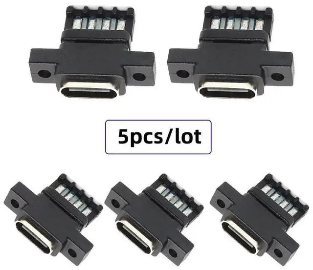 JAENFONG 5pcs/Set DIY OEM Type C Female Socket Connector to 6Pin PCBA Pinout Vertical Scew Mount Type DC 5V/20V PD Power for Wiring