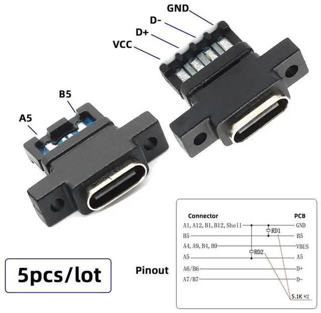 5pcs/set DIY OEM Type C Female Socket Connector to 6Pin PCBA Pinout Scew Mount Type DC 5V/20V PD Power