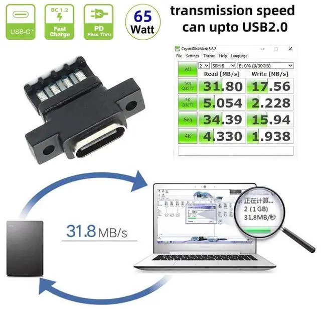 Data transfer: Support USB2.0 port and 480Mbps Data rate, High speed data transfer. Experience fast data transfer speed with the USB-C.