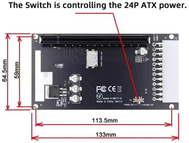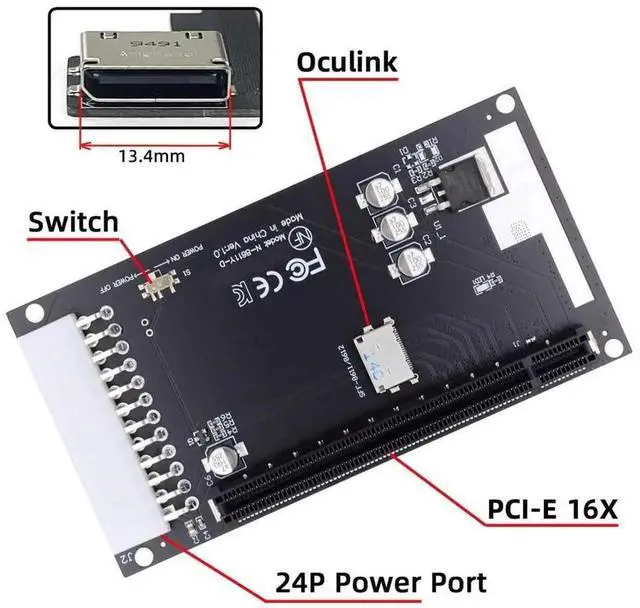 One PCIE PCI-Express 16x 4x device can be connected,The converter can be installed into the system internally through the SFF-8611/8612 oculink interface.