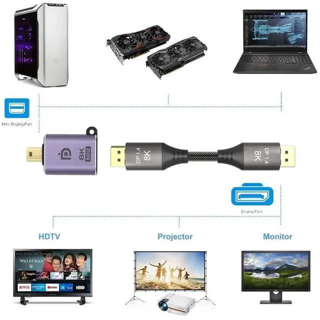 8K Mini DisplayPort 1.4 Male to DP Female 60hz Adapter UHD 4K 144hz 7680*4320 Ultra-HD for Laptop PC Monitor Video
