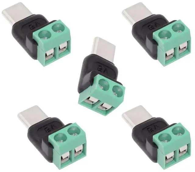5pcs/set DIY OEM Type-C Male Plug Connector OTG Pinout to 2Pin Terminal Output DIY OEM Repair Solderless Connector DC 5V Power