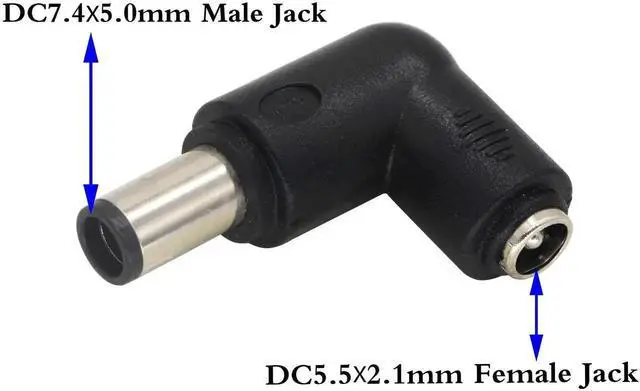 Features90 Degree Angle 7.4 mm x 5.0 mm male DC port to DC 5.5 x 2.1mm female port adapter Coupler