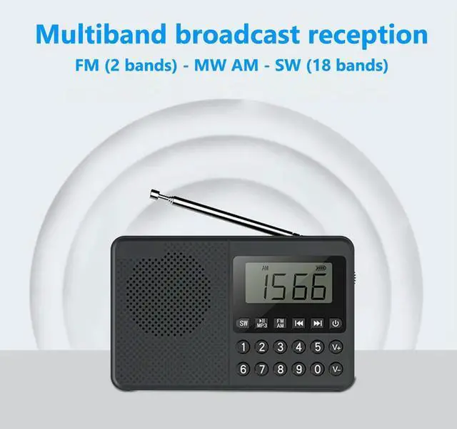 • FM/AM/SW Handheld MP3 Player Dual Antenna Full Band Elder Radio LED Digital Display 2.1 Channel Support USB Stick/TF Card