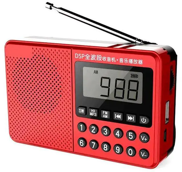 FM/AM/SW Handheld MP3 Player Dual Antenna Full Band Elder Radio LED Digital Display 2.1 Channel Support USB Stick/TF Card