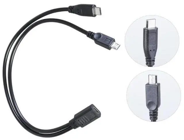 • 2 in 1 Type C female to Micro USB + Type C Male charging cable for Redmi USB Charger Cord