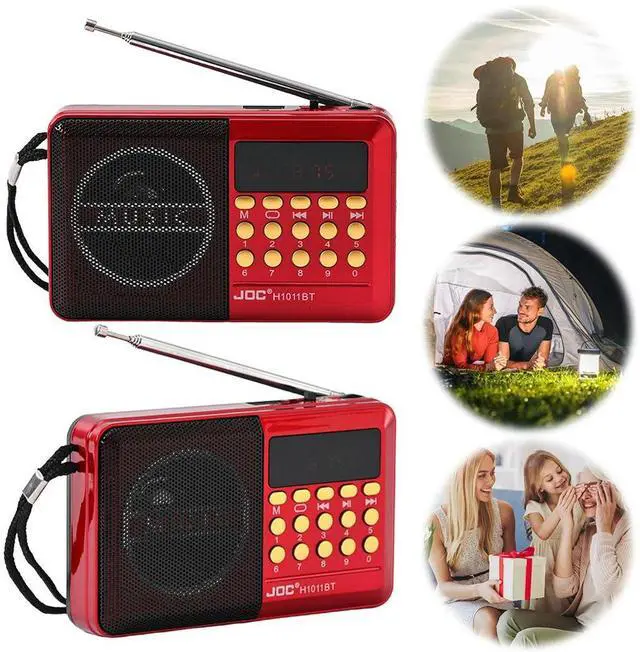 • Portable FM Radio Rechargeable BT 5.4 Radio Speaker Pocket Radio for Home Travel Gifts for Seniors Elderly