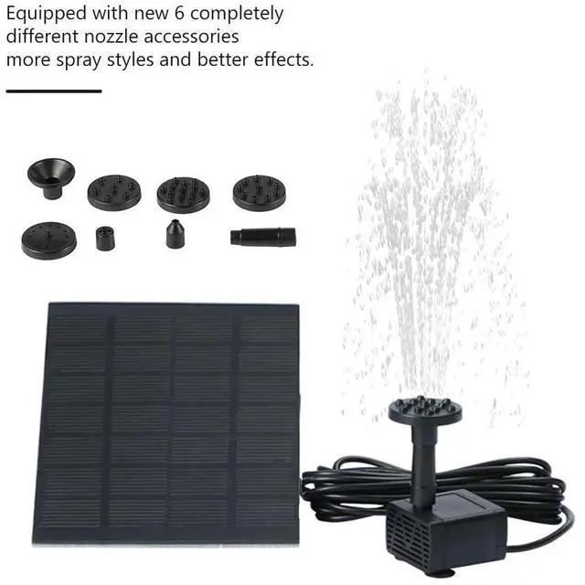 • 1.5W Solar Fountain Pump for Bird Bath with 6 Nozzles DIY Solar Water Fountain Pump Energy Saving for Outdoor Fish Tank Aquarium