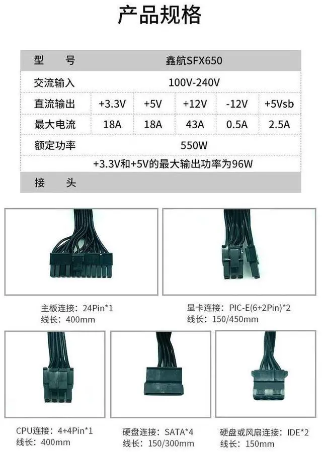• Mute for Xinhang 550W/650W Desktop Small Chassis Computer Gold Full Module ITX Mini SFX Small Power Supply