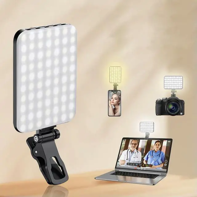 • 60 LED Video Lamp 3 Light Modes 10-Level Brightness 2200mAh Rechargeable 2500K-6500K for Phone Webcam Laptop Photo Makeup