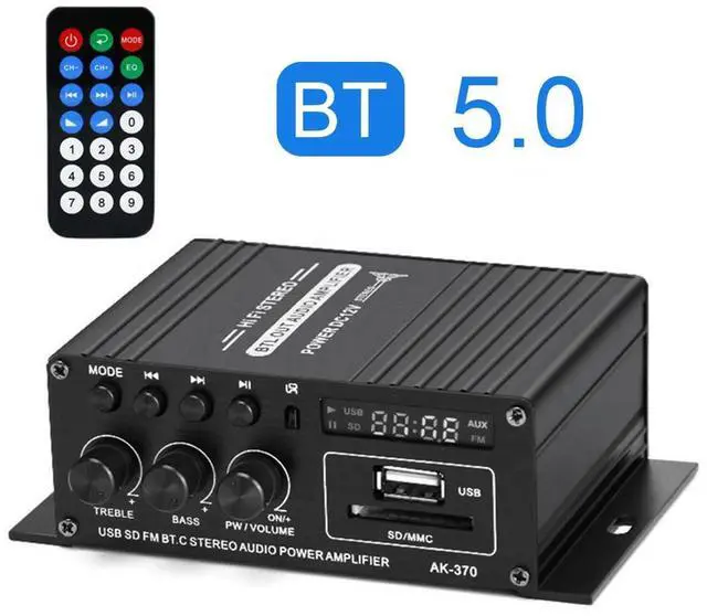 AK-370 Bluetooth-compatible Amplifier 20W+20W Home Theater Amplifier Mini HIFI Auto Music Subwoofer Speaker Stereo USB OTG Input