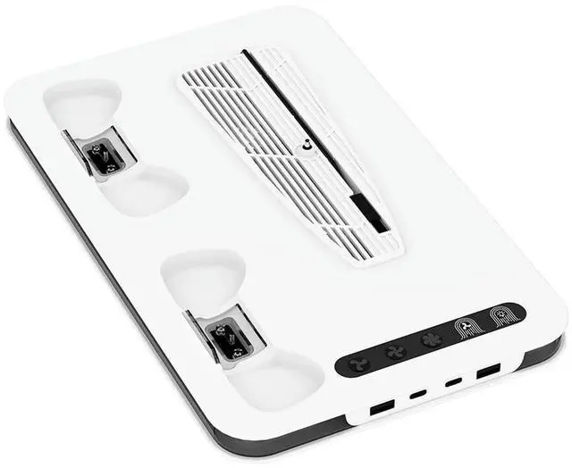 • Cooling Fan Station with Dual Controller Charger 3 Level Fan RGB Light Cooling Stand for 5/Slim/Pro Accessories