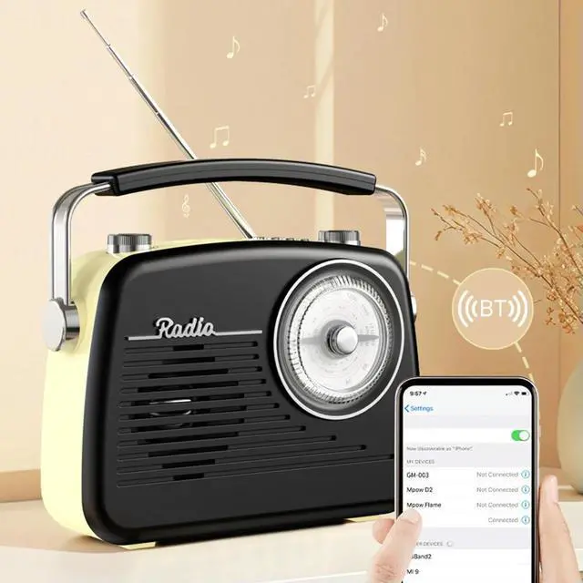 • Portable FM AM SW Radio Support TF Card Retro Radio with BT Speaker for Home Bedroom Living Room Kitchen