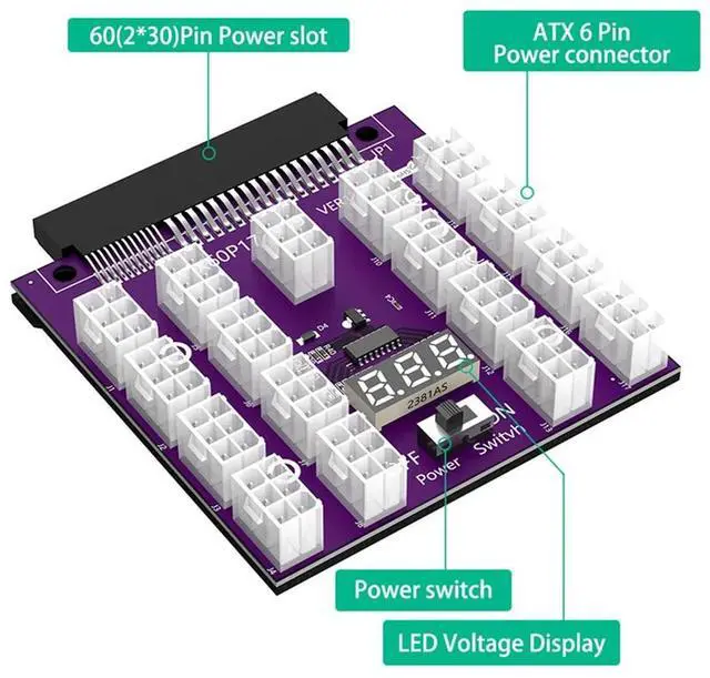 ATX 17 X 6Pin Power Supply Breakout Board Adapter Converter For Ethereum BTC Mining
