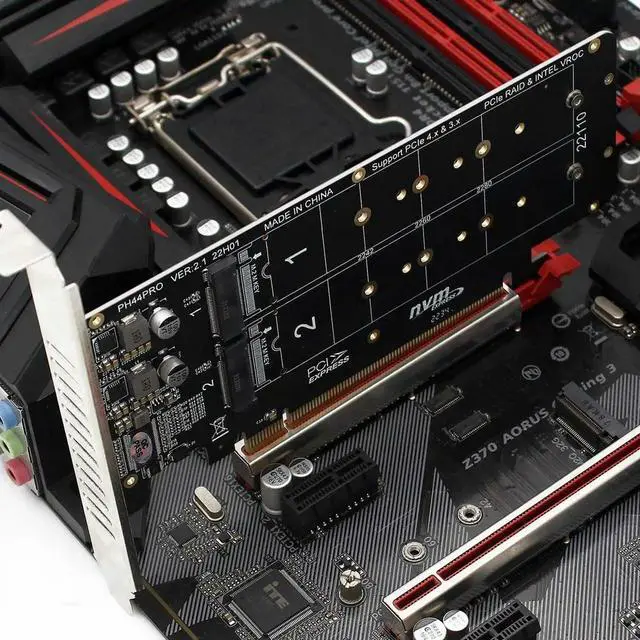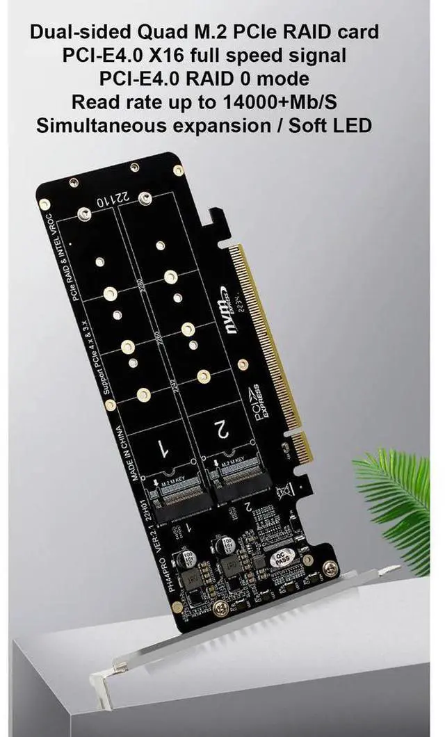 • Nvmex4 SSD 2U Server Riser Card Double-Sided 4-Disk NVME RAID PCI-EX16 Split Card Expansion Card Adapter Card