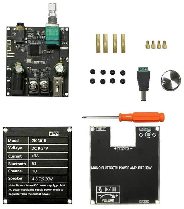 • ZK-301B Bluetooth Amplifier Board Single Sound 30W Bluetooth Audio Power Amplifier Module Home Video Accessories