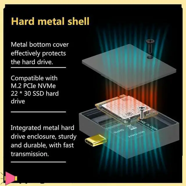 • 2230 M.2 SSD Case 10Gbps Nvme To USB Type-C Aluminum Hard Drive Case For PC And Laptop