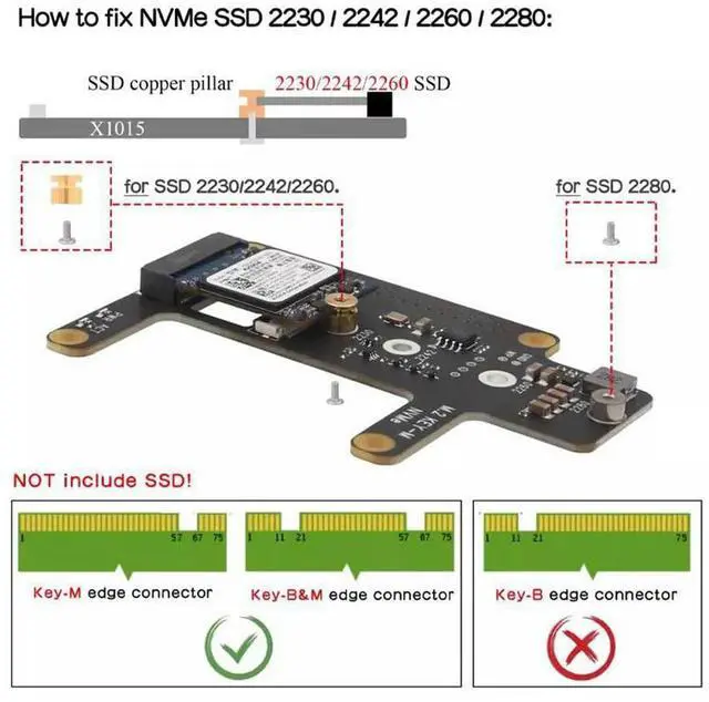 X1015 for Raspbery Pi 5 Expansion Board PCIE to M. 2 NVME SSD Adapter Board Support NVMe M. 2 SSD HailoAI Module for RPI 5