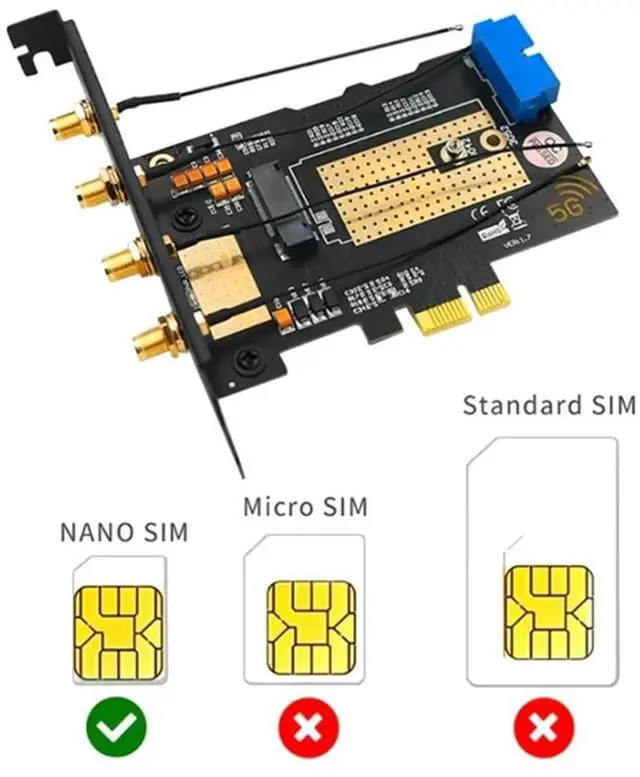 • M.2 B Key USB3.0 & Pcie 5G Dual Bus 5G-WWAN Card Adapter Card, Desktop Adapter Card With 4 Antennas SIM Slots Durable