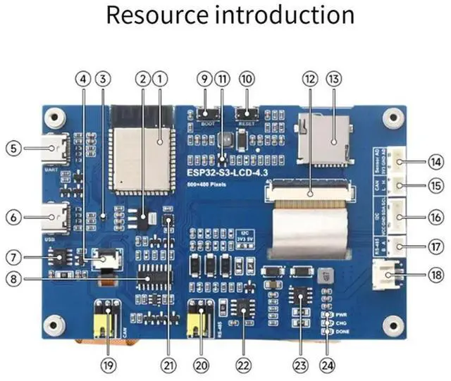 • 4.3 Inch Capacitive Touch Screen Onboard Development Board UART/CAN/RS485 Interface Touch Panel
