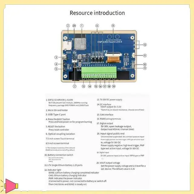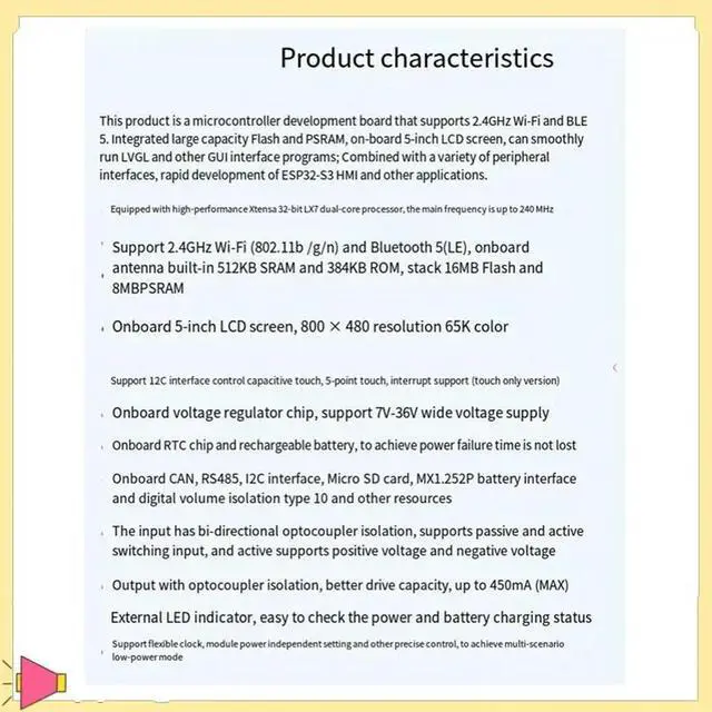 • ESP32-S3 5Inch Capacitive Touch Display Development Board 32-Bit LX7 Dual-Core Processor 32-Bit LX7 Dual-Core & BLE Sup