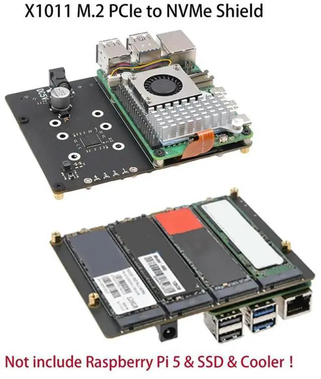 • X1011 PCIE to M.2 NVME SSD Expansion Board for Raspberry Pi 5 Support 4xSSD for 2280/2260/2242/2230 M.2 NVME SSD