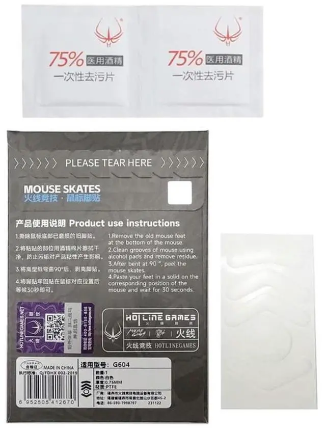 Hotline Games ICE Mouse Skates Feet for G604 Mouse Glides Curved Rounded Edges White Mouse Pad