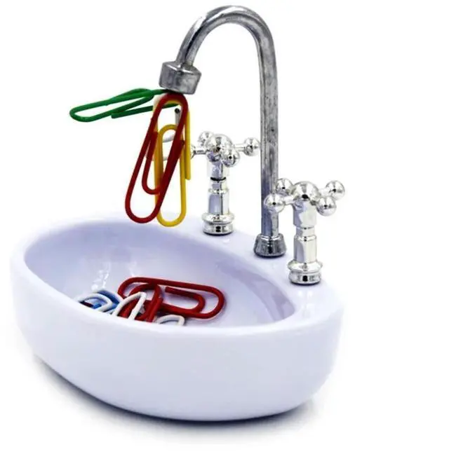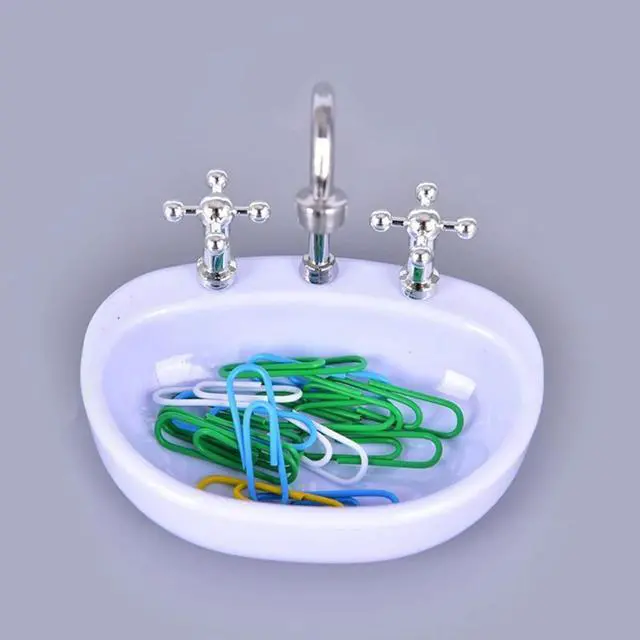 Kitchen Sink Paper Clip Holder Magnetics Paperclips Container Dollhouse Decor Desk Organizer for Kid Adult Gift