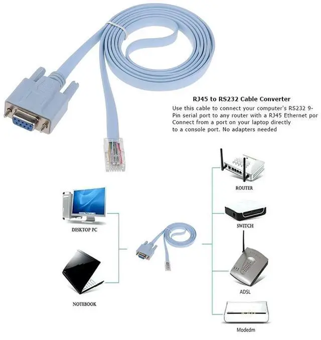 • RJ45 Male to DB9 Female 1.5m Network Console Cable for Switch Router