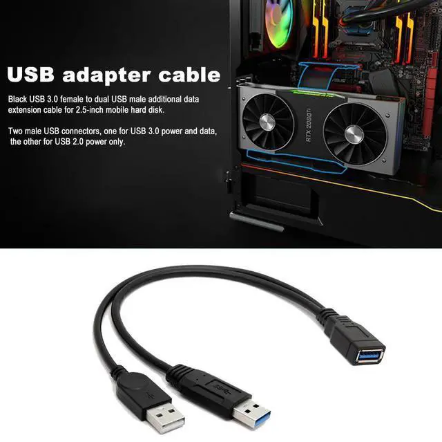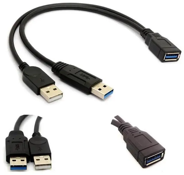 • USB 3.0 to Dual USB Extra Power Data Extension Cable for 2.5 inch External HDD