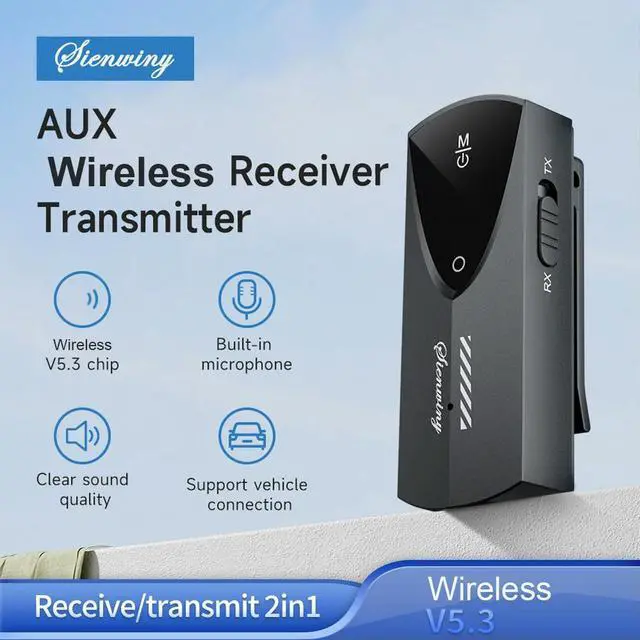 • BT 5.3 2-In-1 Wireless Adapter with Mic Mini Car Audio Connector Low Latency Wireless Transmitter for TV/Home Sound System