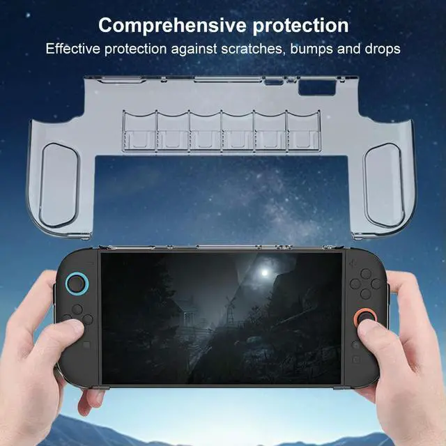 • Clear PC Case for Nintendo for Switch 2 Transparent Shell Shockproof Protective Case Cover with 6 Game Card Slots