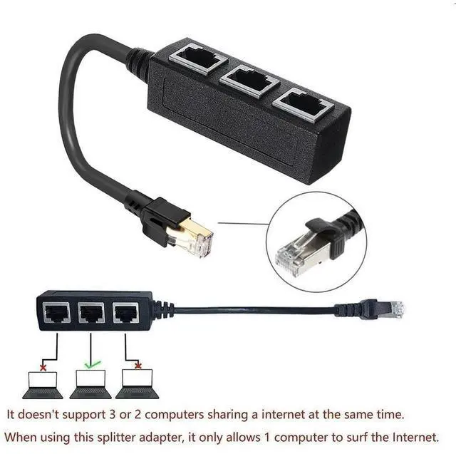 • 1 To 3 Port Extender Adapter Cable for Networking Extension Portable LAN Ethernet Cable Connector Network Adapter for Cat 8/Cat7