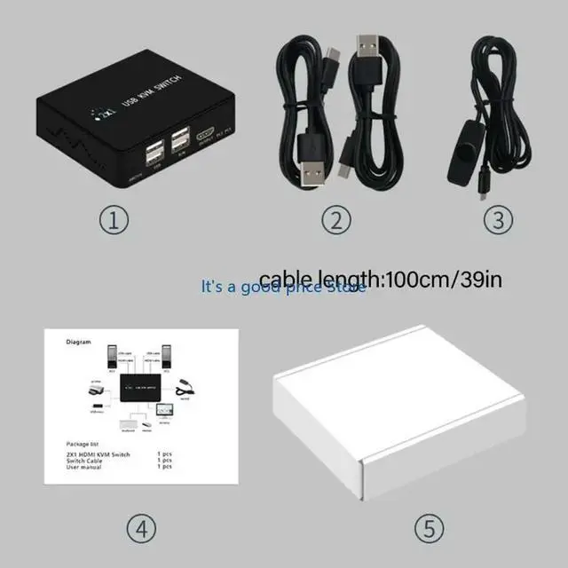HDTV KVM Switcher 2 Input 1 Output 4K 60Hz USB Keyboard Mouse Sharing Selector
