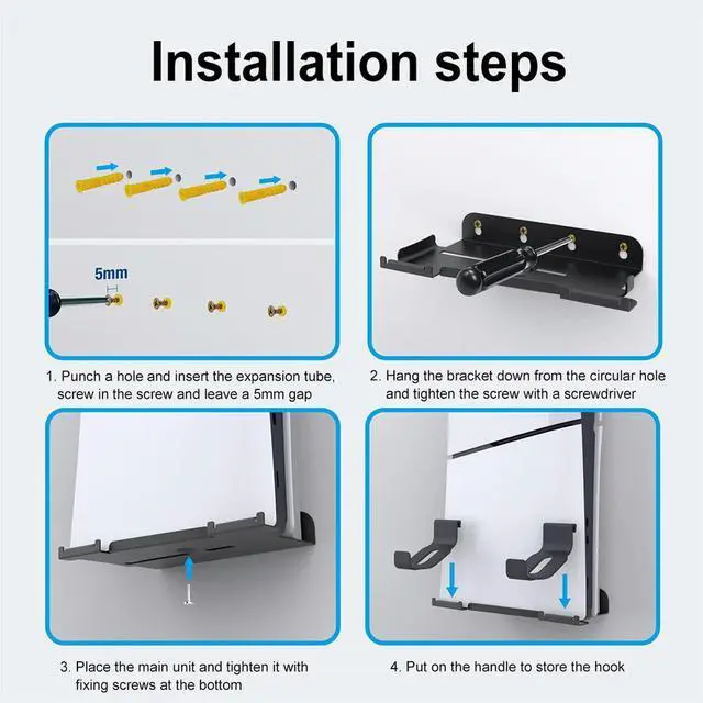 • Wall Mount Bracket Game Console Base Stand Holder with 2 Controller Mounts Display Stand Base Wall Hanging Stand for PS5 Slim