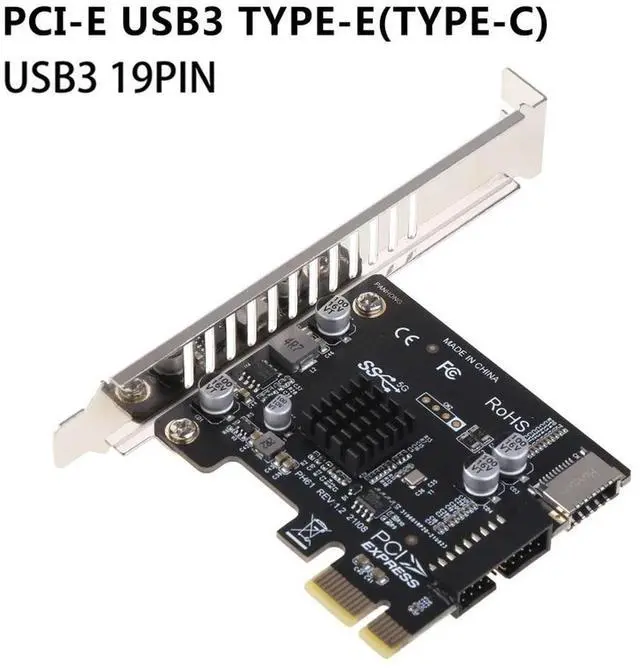 • PCI-E to USB 3.0 Expansion Card 5Gpbs Type E PCI Express Card 19/20 Pin Header for Type C Front Panel Mount Adapter