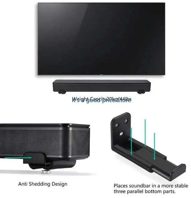 • Home Entertainment Soundbar Wall Bracket Adjustable Depth Speaker Mount Holder Sturdy Support Shelf with Screws
