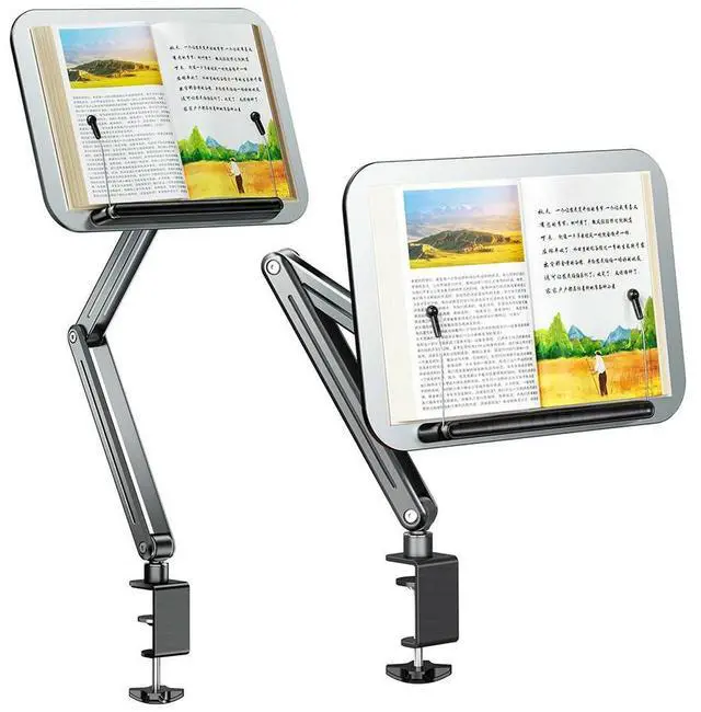 • Desk Clamp Book Stand for Reading Adjustable Cookbook Stand Reading Book Bracket for Laptop Recipe Textbook