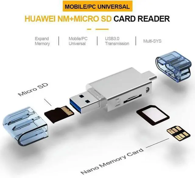 • USB-C Type C /USB 2.0 to NM Nano Memory Card TF Micro-SD Card Reader for Cell Phone &Amp, Laptop