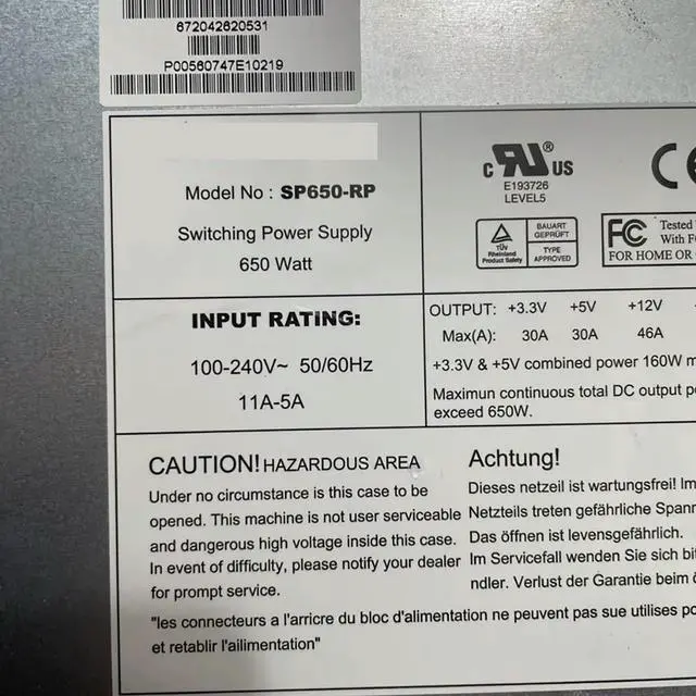 • For Server Power Supply SP650-RP 650W PWS-0056