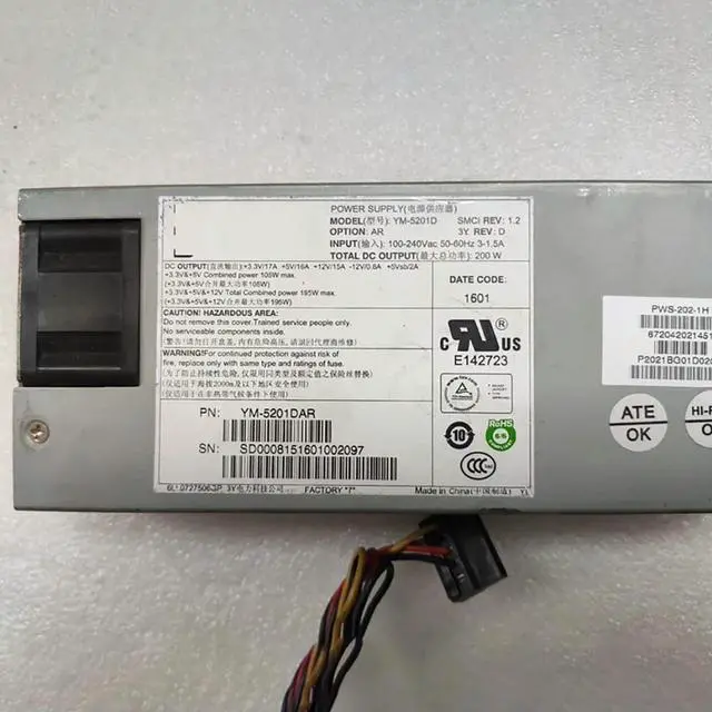 For 3Y 1U Server Power Supply YM-5201D PWS-202-1H