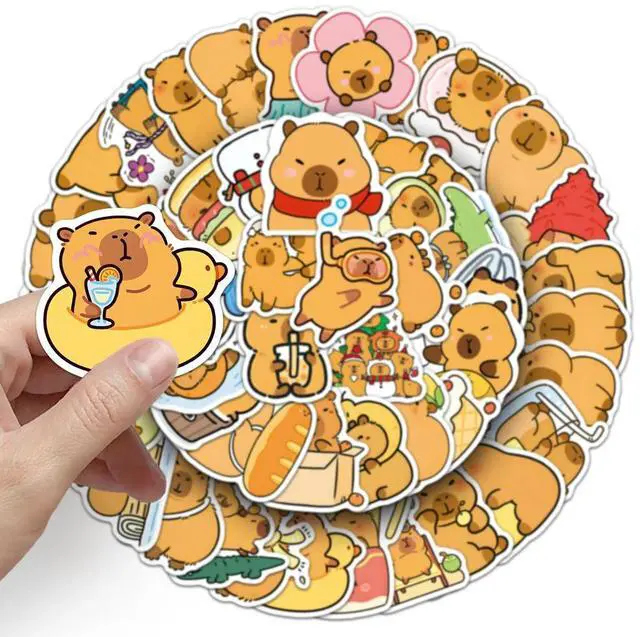• 50 PCS Funny Capybara Waterproof Stickers Cute Animal Capybara Cartoon Stickers for Water Bottle Scrapbook Luggage Bike