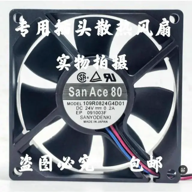 • Fan for Sanyo SanAce80 109R0824G4D01 24V 0.2A 8025 Inverter Cooling Fan 80X80X25mm