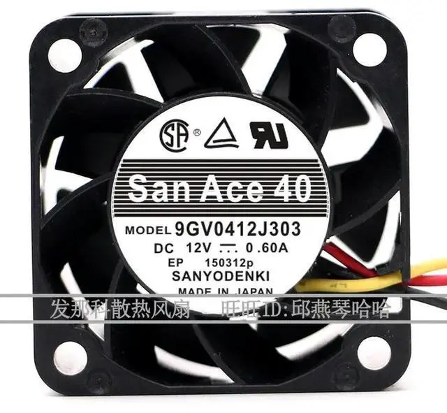 • CPU Fan for Sanyo 9GV0412J303 4028 DC12V 0.60A 4CM High Air Volume Axial Flow Cooling Fan 40*40*28MM